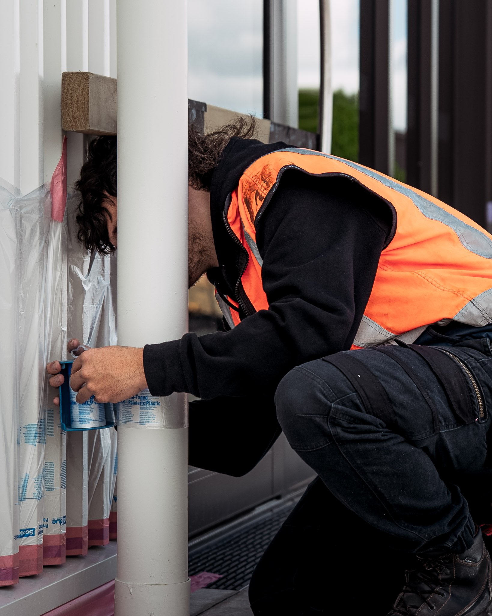 This project involved remedial work to cladding, toe kicks, door leaves, and frames, following surface damage caused by other trades on site. Using Coloursteel and Dulux colour systems, the team restored each area to a clean, consistent finish.